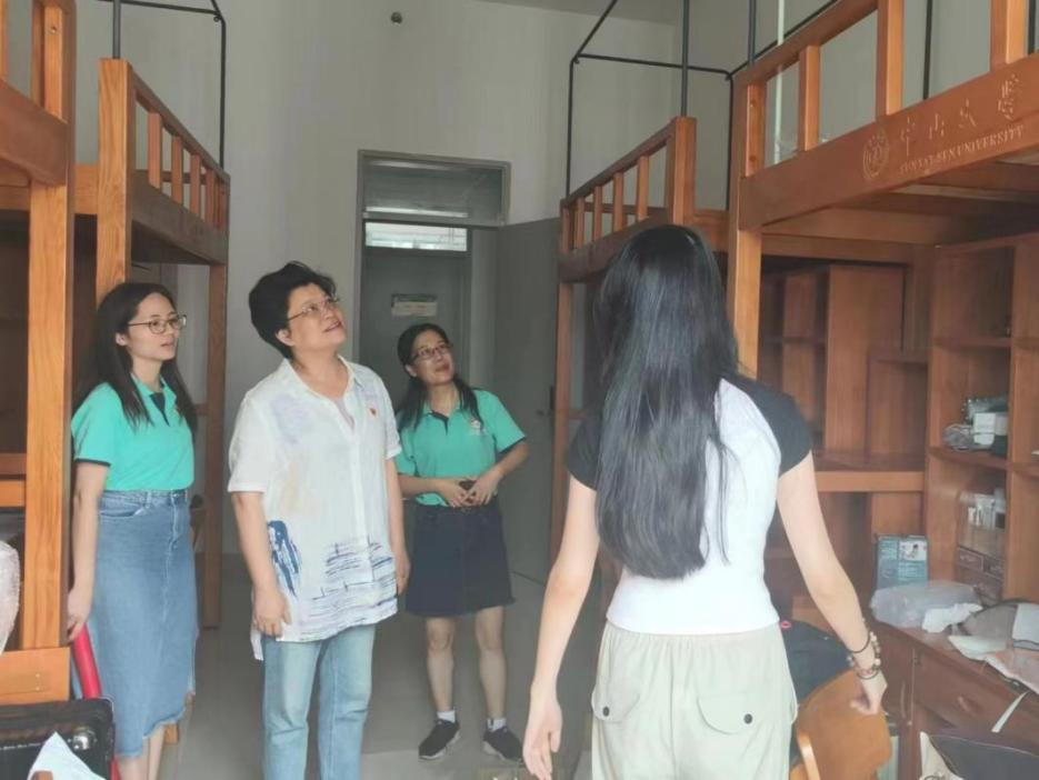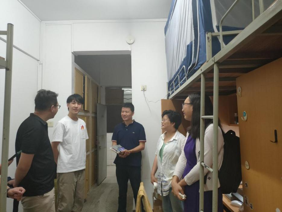 学院格外关注新同学的住宿和饮食适应情况。走访慰问过程中,吴晓枫书记对同学们的到来表示热烈欢迎和亲切问候,详细了解了新生们的专业、生源地等情况,仔细询问同学们在进校后遇到的问题,尤其是住宿条件和食堂饮食的适应情况,多次叮嘱班主任要细致耐心解决学生的问题。六位本科生新生班主任也到各个寝室与班级学生见面,与同学们展开温馨交流。