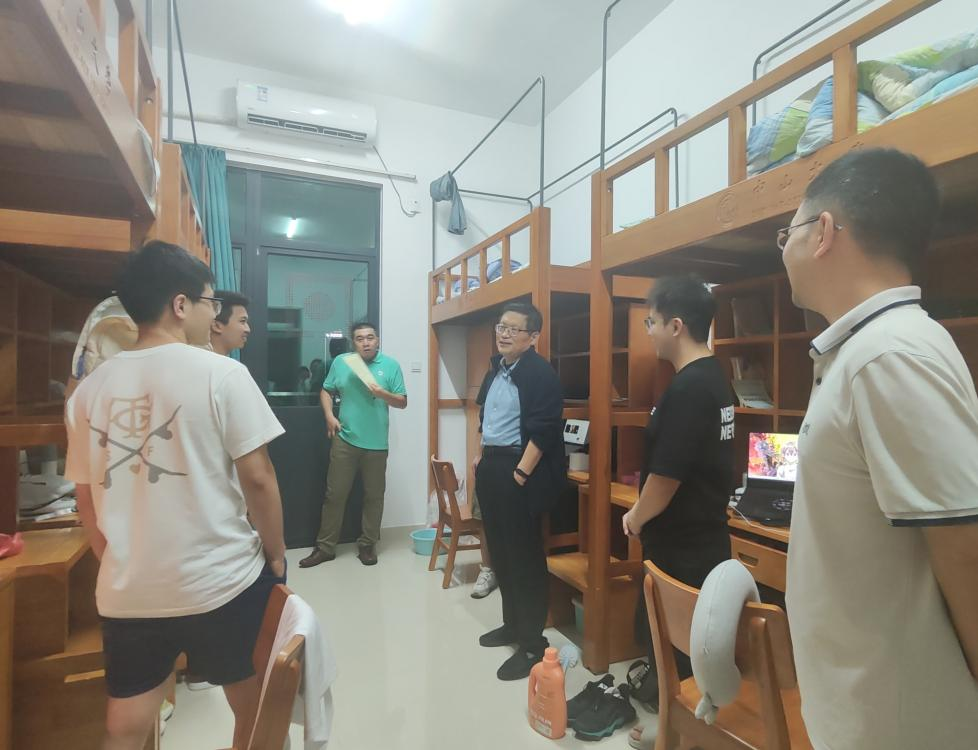 为了解我院新生的住宿和生活情况,引导新生尽快适应大学校园新生活新环境,8月31日晚,学院党委书记吴晓枫、院长刘万泉、党委副书记黄达峰、院长助理谭光、党政办公室副主任徐朋、团委书记张功宝与学院全体管理人员、本科生新生辅导员及班主任,走访新生宿舍慰问248cc永利集团2023级秋季入学新生。