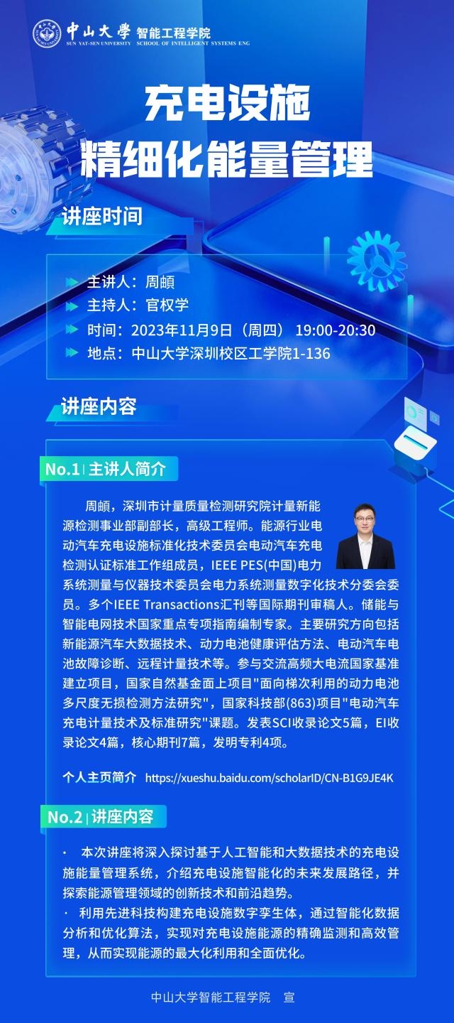 2023年11月09日晚上19点,我院举办“充电设施精细化能量管理”主题学术讲座,讲座在深圳校区工学园1栋136举行。