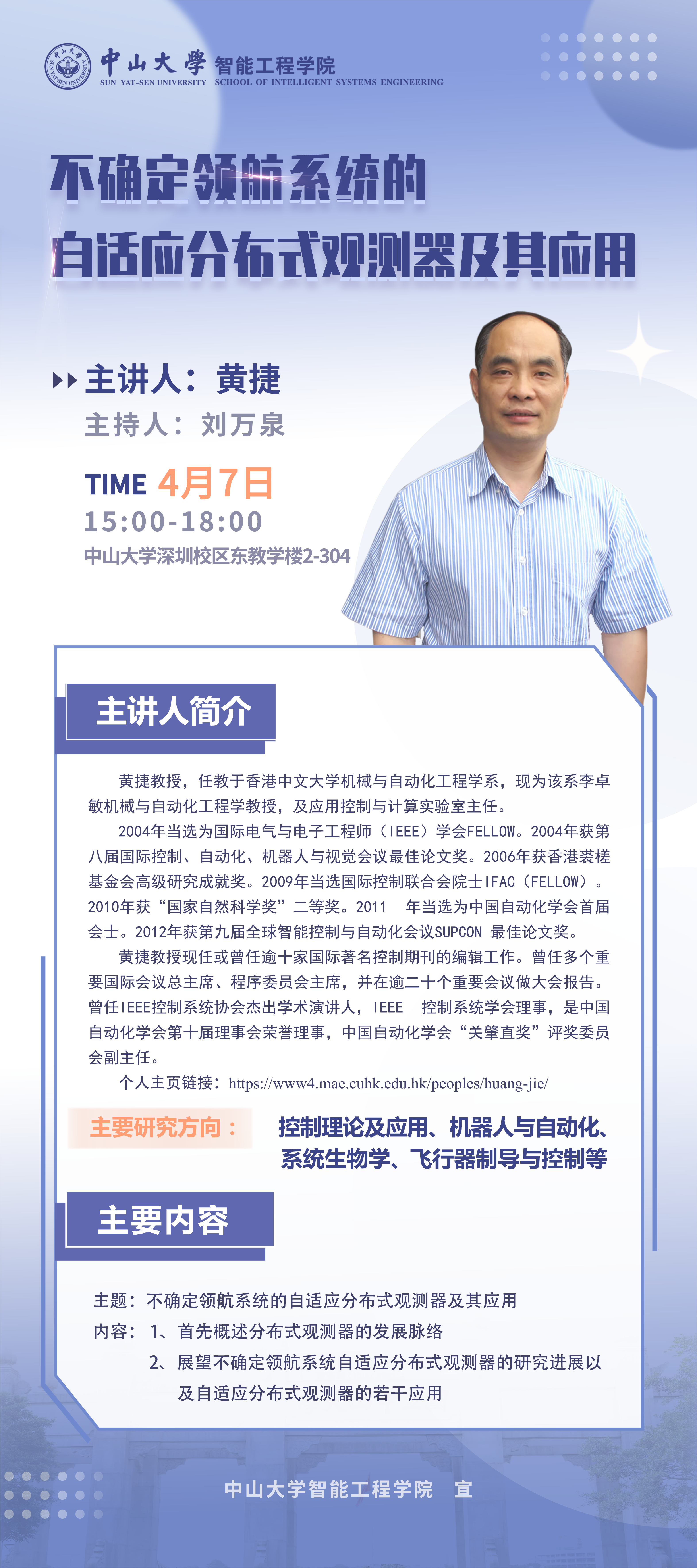 导航痕迹 首页 2023年248cc永利集团学术讲座第四期“不确定领航系统的自适应分布式观测器及其应用” 2023年248cc永利集团学术讲座第四期“不确定领航系统的自适应分布式观测器及其应用” 不确定领航系统的自话应分布式观测器及其应用 发布日期:2023-04-06 最新讲座 学术讲座 | 陈波立:"面向智慧城市感知、监测和控制的多智能体系统Multi-Agent Systems for Sensing, Monitoring, and Control in Smart Cities”的学术报告讲座2025-07-28 学术讲座 | 杨在:"Carathéodory-Fejér定理与信号频谱分析”的学术报告讲座2025-07-28 学术讲座 | 荣建:"交通工程学知识体系重构:从人内机理到系统优化的研究进展”的学术报告讲座2025-06-24 学术讲座 | 施阳:"自主智能机电系统的先进鲁棒模型预测控制框架”的学术报告讲座2025-05-20 学术讲座 | 占曙光:"高速铁路列车运行调整优化研究”的学术报告讲座2025-03-28