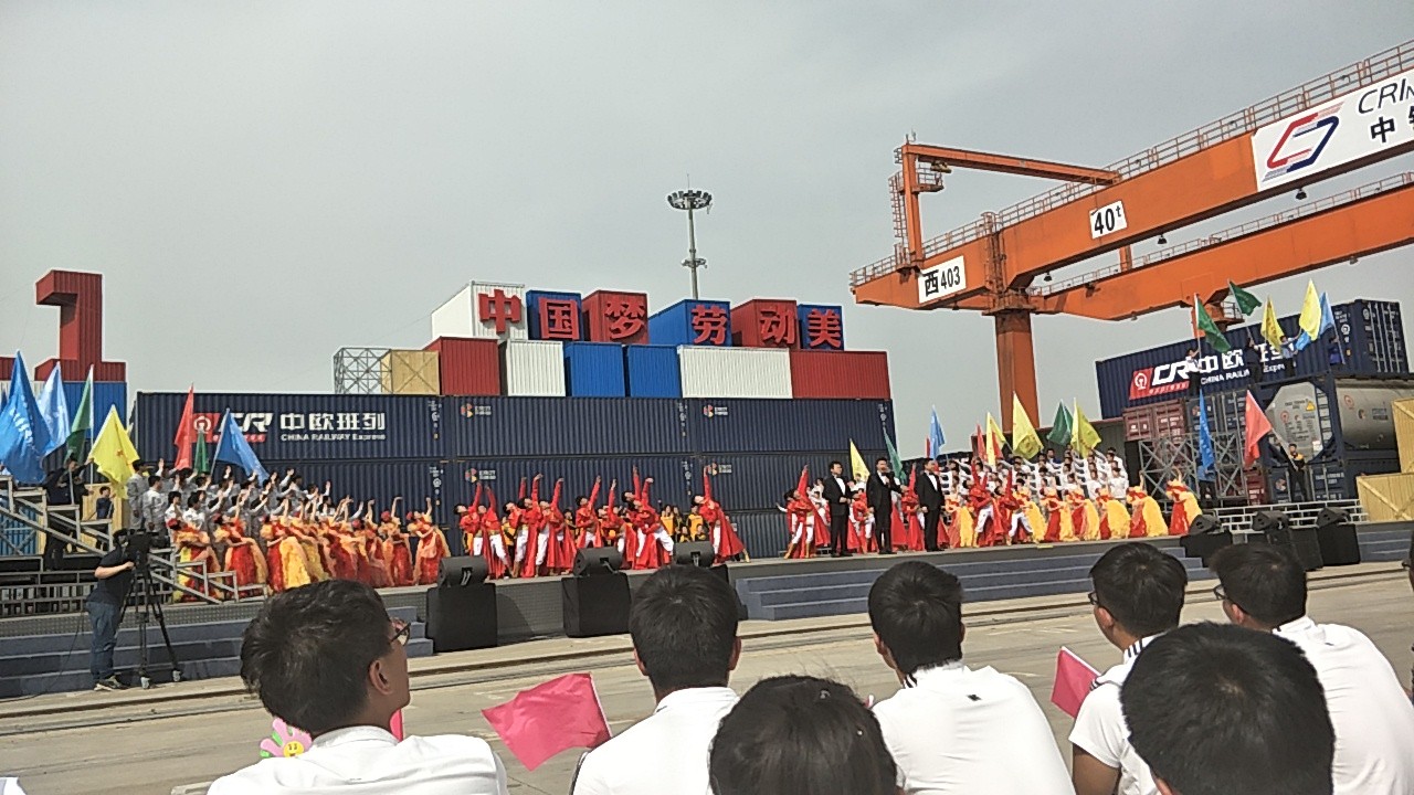 4月18日下午,2017年心连心“中国梦 劳动美”五一分会场在国际港务区中欧班列始发站内录制。两台气势磅礴的龙门吊车徐徐升起,央视五一国际劳动节心连心特别节目西安分会场录制正式开始。演出舞台搭建在国际港务区中欧班列始发站内,背景用集装箱搭建而成,一辆火车头当做移动平台,淋漓尽致展现了内陆港的精气神。为配合节目演出,台下西安铁路局各个机务段职工组成的各色方阵摇旗呐喊,庆祝属于劳动者自己的节日。