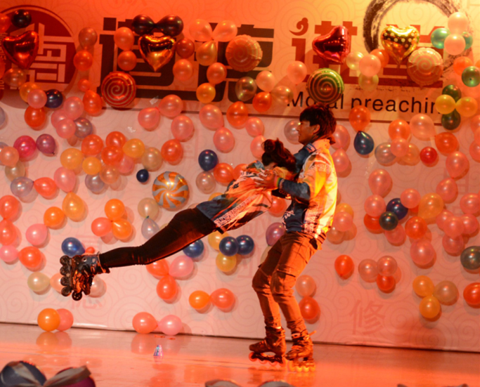社团节目推陈出新,开场的轮滑社的节目展现了速度与激情,充满活力,节奏感强烈的音符一开场就撩动起观众的情绪;音乐社学生深情的演唱《独家记忆》,更是引起观众内心深处的强烈共鸣,全场观众随心而悦;话剧社的哑剧 《理发》让人耳目一新,演员们表演夸张生动,诙谐幽默,为现场带来了一阵阵笑声,鼓励新同学积极向前;音乐社的吉他演奏则带给观众一片静谧的享受,高尚而优雅;街舞社动感十足风格各异的舞蹈更是让人热血沸腾。大一新生的节目也丝毫不逊色于学校的社团节目。最让人难忘的当数编排的舞蹈《卓玛》和《Dance spun》,动作与音乐完美配合,独特而优雅的舞蹈引来了阵阵掌声。热辣而又性感的爵士舞也让观众过目难忘,五位舞蹈演员挺拔优雅的身姿、热情奔放的舞蹈赢得喝彩无数。还有自编自导的小品、相声等精彩表演。内容贴近生活,高雅积极,带给观众视听享受之余也丰富了同学们的思想。还有我校本届学生会各部门部长的大合唱《国家》,主持人的诗朗诵表演《青春中国》等等,带给大一新同学视觉、听觉、心灵上的震撼,展现了丰富多彩的电专校园生活。