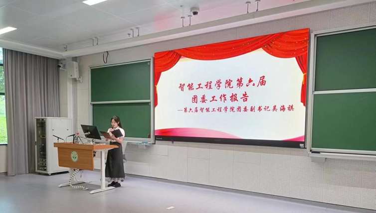 学生兼职团委副书记吴海祺代表第六届团委作2022-2023年度工作报告。过去一年,在建设综合型团委的理念的基础上,以“科学、精简、团结、高效”为工作宗旨,紧扣学科特点,紧抓学风建设,着力培养广大青年学生的科学文化素养、思想政治素养和社会责任感,着重做好广大团员的思想政治工作,营造良好的学术氛围,并且大力开展志愿服务工作,在为社会奉献自己一份力量的同时对外展示我院学子良好的精神风貌,力求将团委打造成一支“科学化、专业化”的队伍。