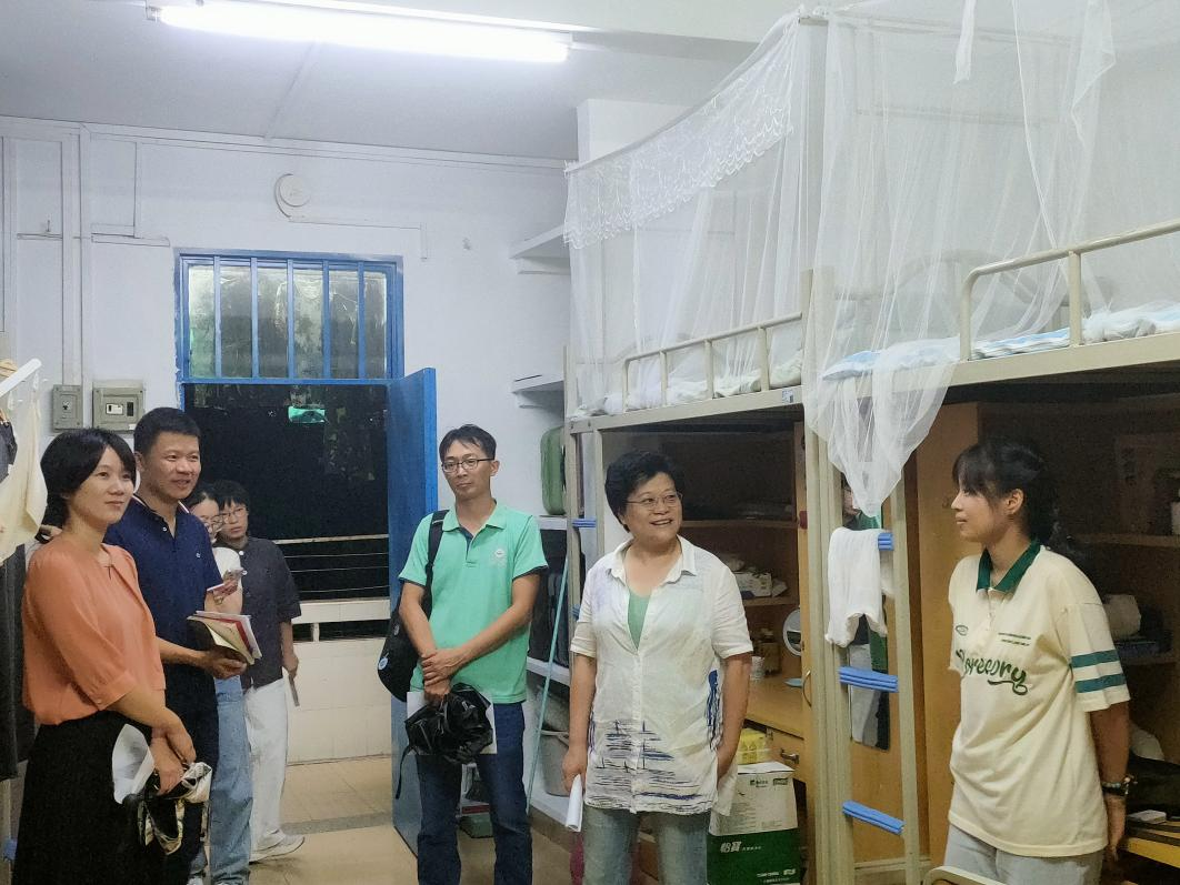 学院格外关注新同学的住宿和饮食适应情况。走访慰问过程中,吴晓枫书记对同学们的到来表示热烈欢迎和亲切问候,详细了解了新生们的专业、生源地等情况,仔细询问同学们在进校后遇到的问题,尤其是住宿条件和食堂饮食的适应情况,多次叮嘱班主任要细致耐心解决学生的问题。六位本科生新生班主任也到各个寝室与班级学生见面,与同学们展开温馨交流。