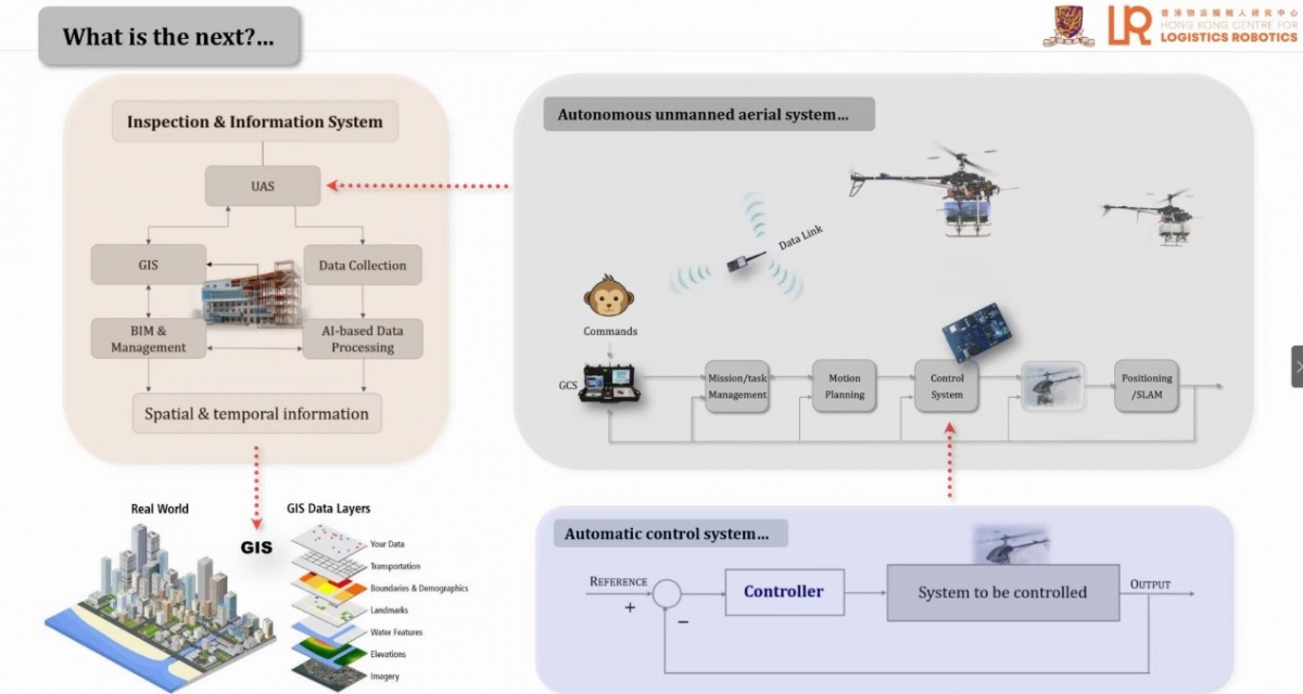 陈本美教授围绕“人工智能和无人系统技术在检测和信息管理系统中的应用”这一主题,分别从(1)无人机系统硬件平台和软件系统;(2)用于处理无人机系统收集数据的人工智能算法和软件平台;(3)建筑物信息模型和管理系统与地理信息系统以及建筑物缺陷数据库等几个方面入手,详细介绍了一种先进自动建筑物检测系统的搭建过程。讲座过程中,陈教授还通过工作案例分享的方式,生动形象地介绍了建筑物检测报告的生成过程,并验证了所提自动建筑物检测系统的有效性与灵活性。