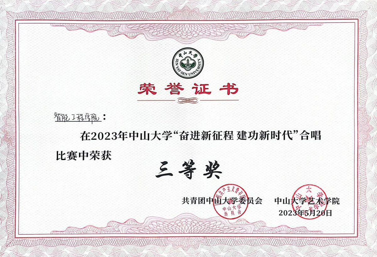 喜报:248cc永利集团荣获中山大学 2023年“奋进新征程 建功新时代” 合唱比赛三等奖