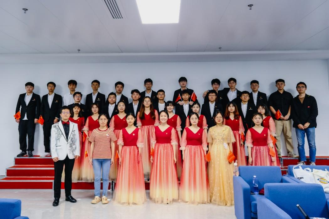 乔文瑛:这是一次非常难忘的独唱经历。第一次担任领唱非常紧张,感谢队友们给予了我无限的包容和鼓励,让我有了更自信的表现。站到舞台上的那一刻,灯光照耀,我的内心无比激动。歌声传达着智工学子对新时代的热爱和承诺,对党和祖国的崇敬与热情!