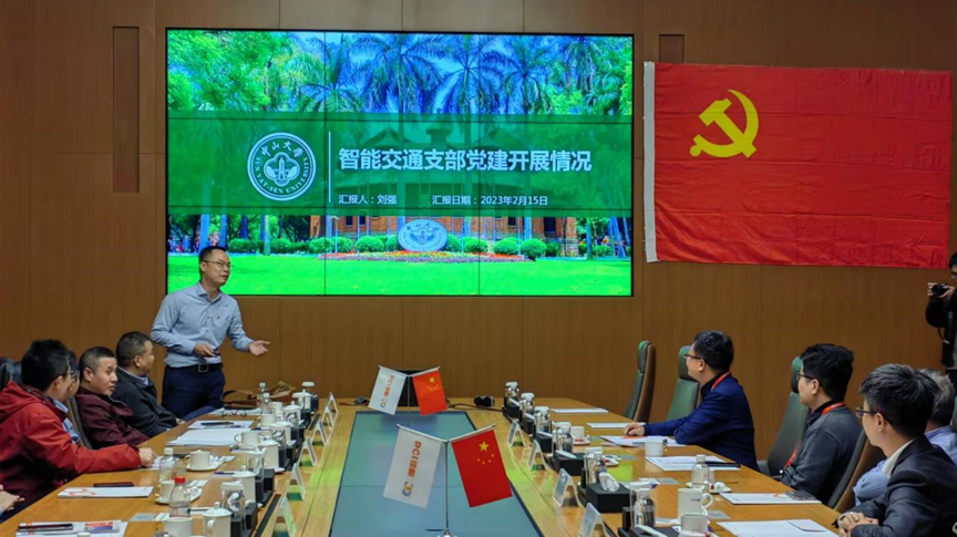 为促进党建与业务融合,推进中山大学-佳都科技集团在智慧交通方面的合作,2023年2月15日248cc永利集团智能交通专任教师党支部与佳都科技集团开展党建交流与主题党日活动。248cc永利集团党委书记吴晓枫、党委副书记黄达峰、佳都科技集团党委书记刘佳出席,智能交通专任教师党支部党员和佳都科技集团党支部党员约30人参加了活动。