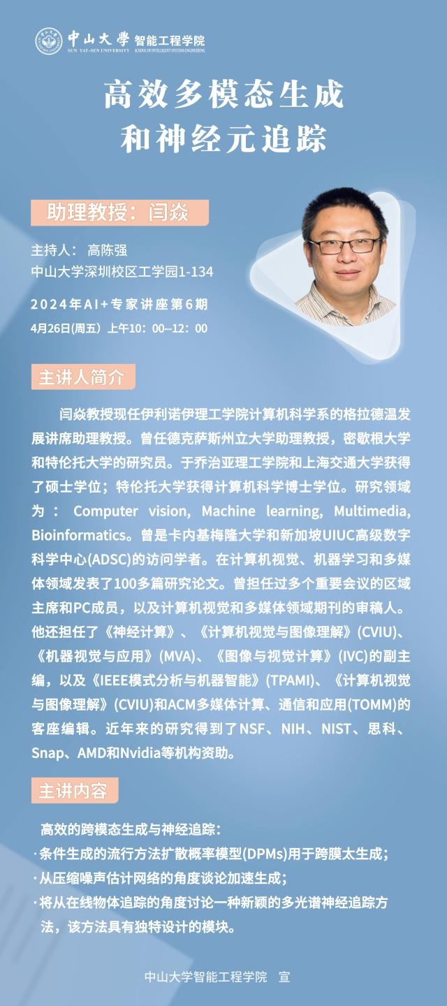 学术讲座 | 闫焱:"高效多模态生成和神经元追踪”的学术报告讲座