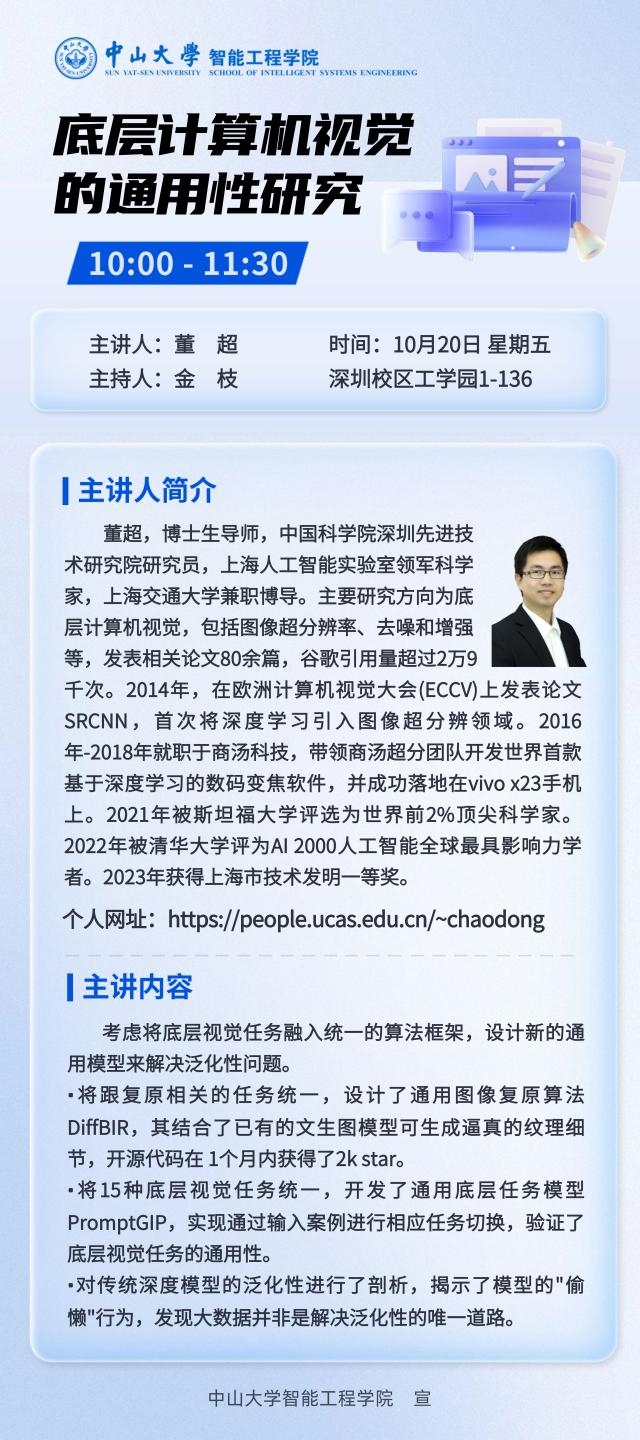 底层计算机视觉的通用性研究 2023年10月20日上午10点,我院举办“底层计算机视觉的通用性研究”主题